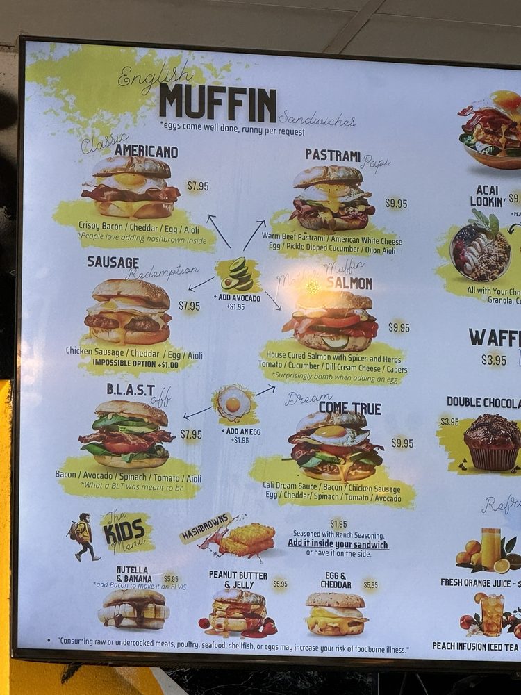 Welcome to Muffin Can Stop Us in Studio City, a delightful destination for breakfast and brunch enthusiasts. Nestled on Ventura Blvd, this charming eatery offers an exciting array of English muffin sandwiches that elevate the classic brunch experience. Highlights include the Mother Muffin, featuring house-cured salmon, and the hearty Sloppy Chorizo, a must-try for those craving bold flavors. Each dish is thoughtfully crafted, with generous portions and a delightful blend of ingredients like crispy hash browns, cheese, and fresh vegetables.
